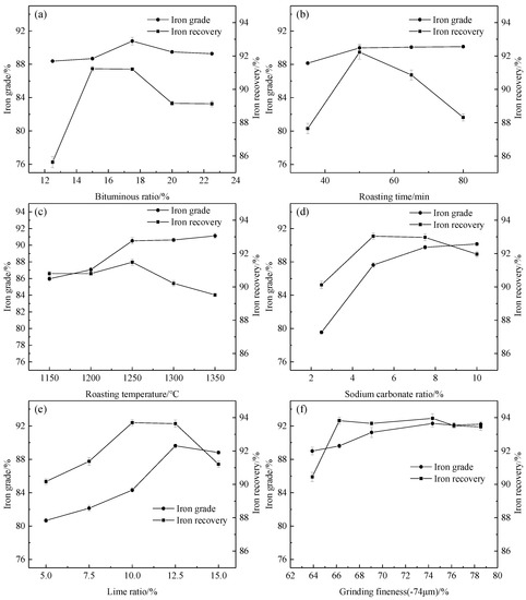 3.2.1. Effect of Bitumite Ratio on Iron Recovery