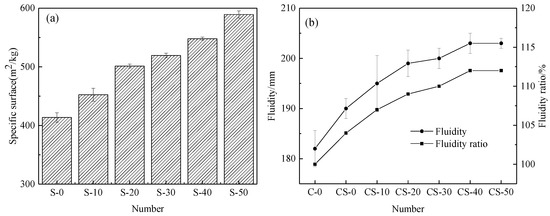 3.3.2. Specific Surface Area of the Slag-Tailing Composite Admixture and the Working Performance of the Mortar