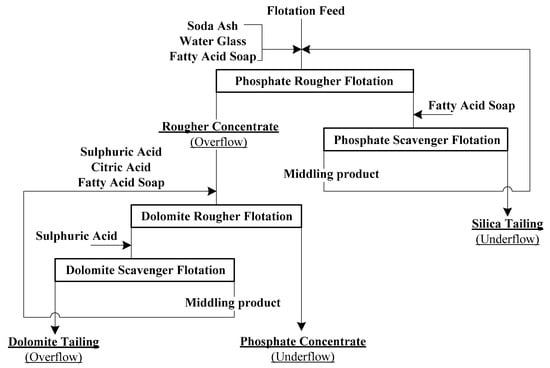 - Guo, F.; Li, J. Separation strategies for Jordanian phosphate rock with siliceous and calcareous gangues. Int. J. Miner. Process. 2010, 97, 74–78. [Google Scholar] [CrossRef]