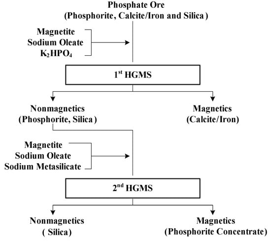 - Shaikh, A.M.H.; Dixit, S.G. Beneficiation of phosphate ores using high gradient magnetic separation. Int. J. Min. Process. 1993, 37, 149–162. [Google Scholar] [CrossRef]