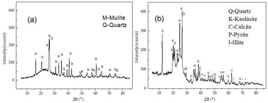 XRD patterns for FA-2 (a) and the feed coal for FA-2 (b).