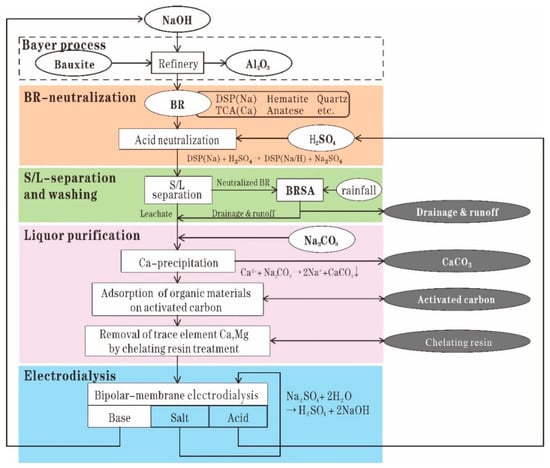 - Kishida, M.; Harato, T.; Tokoro, C.; Owada, S. In situ remediation of bauxite residue by sulfuric acid leaching and bipolar-membrane electrodialysis. Hydrometallurgy 2017, 170, 58–67. [Google Scholar] [CrossRef]