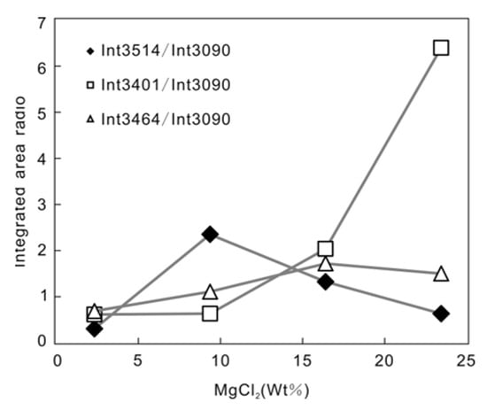 Total integrated area of MgCl2 hydrate peaksTotal integrated area of MgCl2 hydrate peaks/3090 cm−1