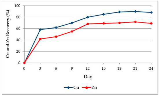 Also it was found that for the 12 days 88% and 70% recoveries for Cu and Zn can be achieved without adaptation [37].