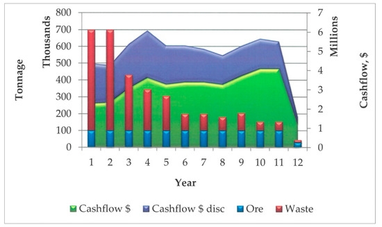 As it is known, in the mining industry, any project has to have a long-term feasibility calculation. The proof of feasibility is typically demanded at the least by the potential investors and creditors. The traditional Discounted Cash Flow (DCF)—based methods are still regarded as an industry standard when evaluating the value of the mining operation. Net Present Value is calculated in the software Whittle by discounting the estimated annual cash flows at the present time using the discount rate, which represents the risk of investing: