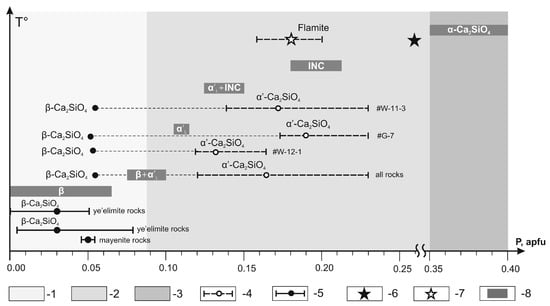 4 polymorphs from the Hatrurim larnite CM rocks. Symbols stand for: circles = larnite; squares = α′-Ca