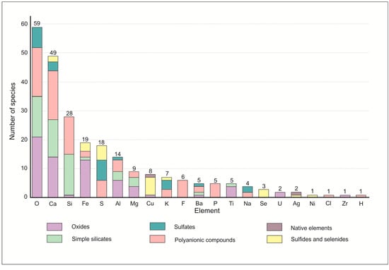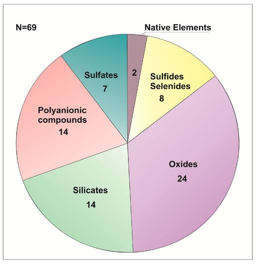 Distribution of chemical classes of minerals in the Hatrurim Fm larnite CM rocks. N is the number of species.