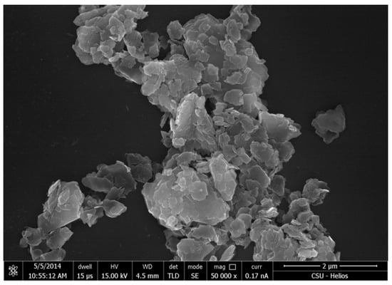 SEM micrograph of kaolinite with 2 × 10−4 M CTAC at pH 2.4.