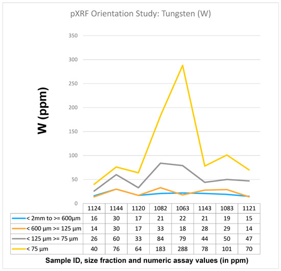 Figure 7. Results of an orientation study [29] carried out using portable pXRF equipment in order to determine the most suitable grain size fraction for the present stream sediment sampling campaign.