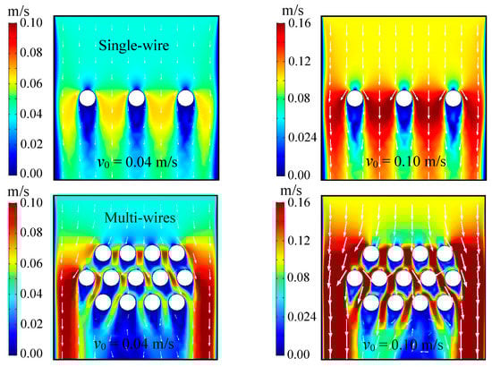2.3. Fluid Characteristics around Single-Wire and Multi-Wires