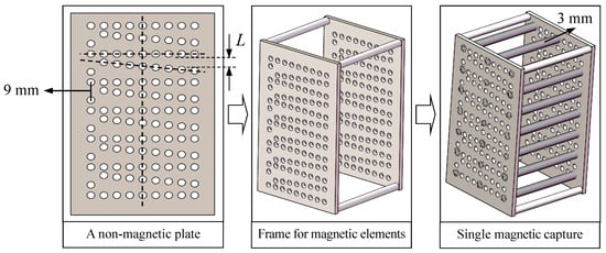 Figure 5, in the method circular holes were regularly drilled in two non-magnetic plates, which were used for inserting magnetic wires. In the investigations, the wires were inserted in the plates at a sufficiently large spacing of 6 mm to avoid the magnetic coupling effect between the wires.