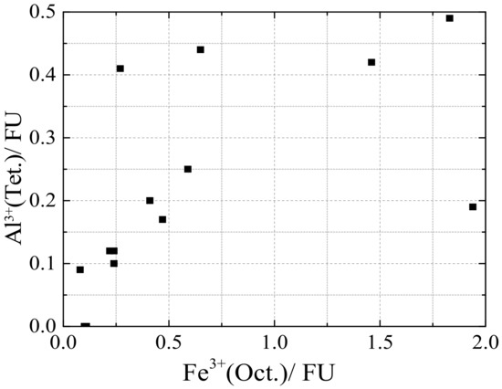 Relationship between tetrahedral Al3+ content and octahedral Fe3+ content.