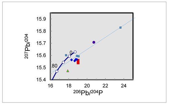 - Stacey, J.S.; Kramers, J.D. Approximation of terrestrial lead isotope evolution by a two-stage model. Earth Planet. Sci. Lett. 1975, 26, 207–221. [Google Scholar] [CrossRef]