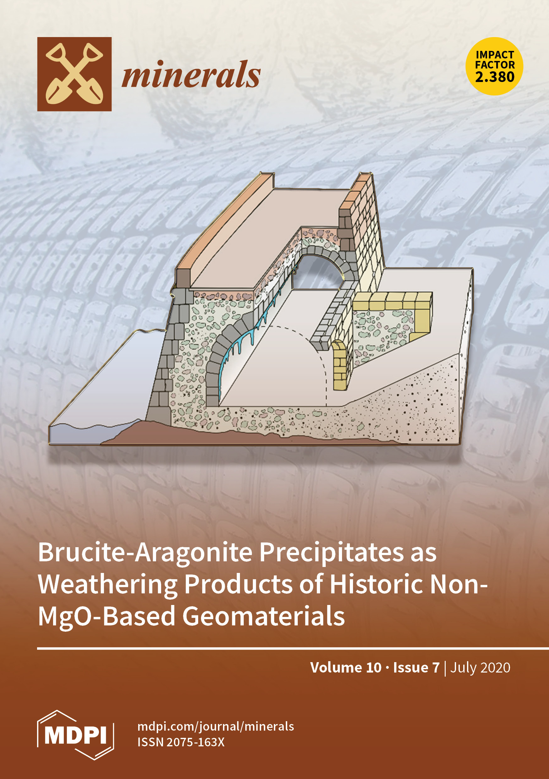 Cover Story: This paper analyses the mineralogical composition, texture and structure of a stalactite sampled from the city-wall storerooms of the Nueva Tabarca fortress (SE Spain). This speleothem presents an uncommon mineral assemblage: aragonite, brucite, gypsum, silica and halite. Internally, it shows a complex structure: 1) a central soda-straw composed by aragonite; 2) an external puff-pastry cone-crust formed preferentially by aragonite and brucite; and 3) an internal branching of coralloids, showing a subtle layering between brucite and aragonite. PHREEQC calculations showed that interaction between pore waters and the minerals of mortar aggregates of the city-wall (dolomite, pyroxene and amphibole) leads to rich-magnesium solutions. Evaporation modelling of lixiviated waters describes the precipitation of the mineral assemblage of the brucite–aragonite speleothems. View this paper