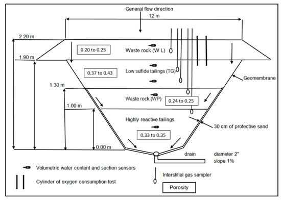 In Part 2 of this study, the authors use laboratory- and field-based experiments to test the capacity of a CCBE to control AMD generation from the LaRonde mine tailings. Laboratory column tests are commonly used to assess the hydrogeological and geochemical behavior of reclamation scenarios [4,6,7,10,11,12,13,14]. Several authors [15,16,17,18,19,20,21] have also stressed the importance of intermediate field scale experiments as tools in predicting cover performance at full scale. Indeed, intermediate field scale tests enable a more accurate accounting of site-specific, transient climatic conditions (e.g., temperature, precipitation, and freeze–thaw and wet–dry cycles) on the system’s geochemical behavior [20].