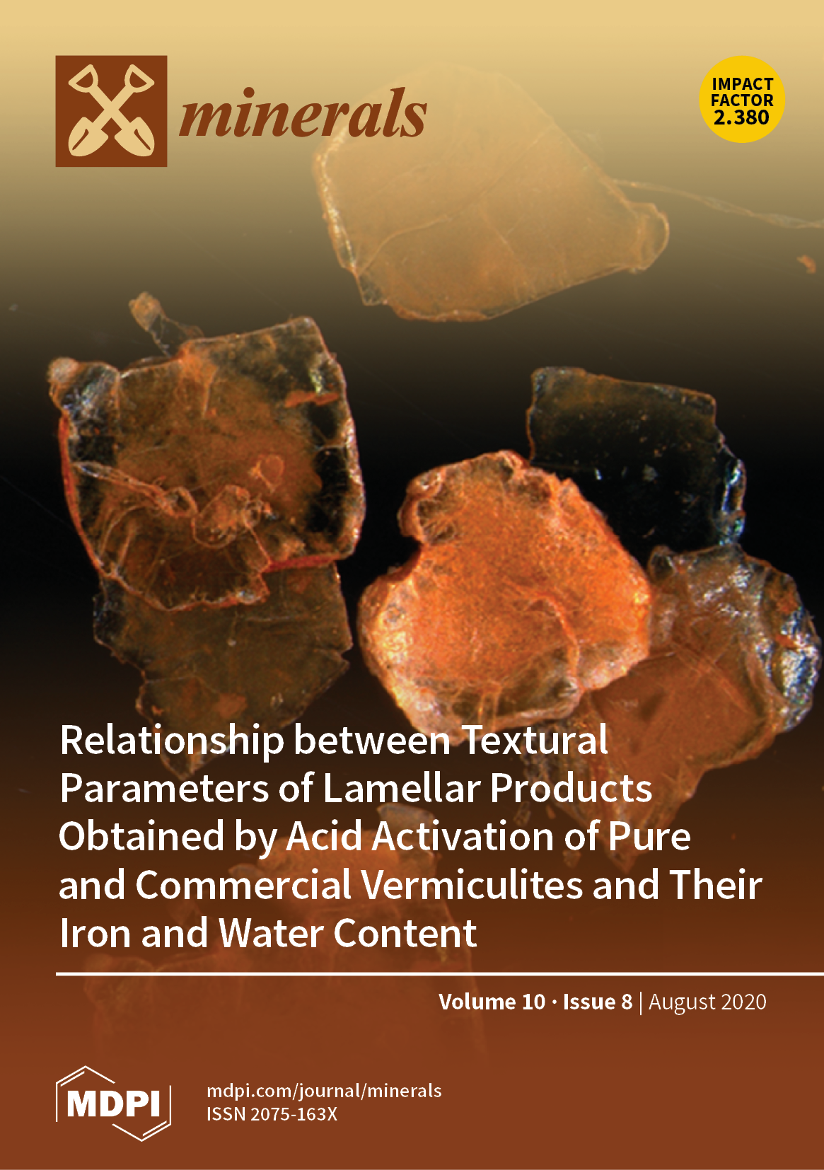 Cover Story: Vermiculite is a layered silicate mineral with 2:1 crystalline structure and a broad diversity in charged layers associated with numerous isomorphic substitutions, disorder effects, dehydration–rehydration ability and swelling processes. Vermiculites are more abundant and much cheaper compared to other clays, with the same benefits. Therefore, they represent an interesting mineral for numerous environmental, constructional and agricultural applications. In this article, nitric acid was used to exfoliate some vermiculites to a degree that dramatically increased their specific surface area and altered their iron content, and the effect was even greater for the thermoexfoliated vermiculite. The cover image shows a light microscope image for one of these exfoliated vermiculites. View this paper