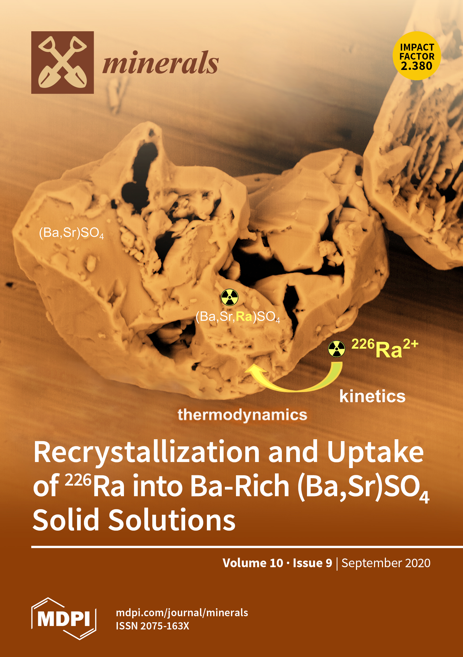 Cover Story: 226Ra is an important contributor to naturally occurring radioactive materials (NORM) and also relevant in some safety cases related to the disposal of spent nuclear fuel in a deep geological repository. Recrystallization and solid solution formation with sulfates are regarded as an important retention mechanism for 226Ra. Here, we have investigated the (Ba,Sr)SO4 solid solution at the Ba-rich end with regard to the 226Ra uptake kinetics and solubility. It is remarkable how already low amounts of Sr have an impact on the 226Ra solubility and the recrystallization kinetics of the solid solution–aqueous solution system (Ba,Sr,Ra)SO4 + H2O. The experimental findings confirm a theoretically predicted minimum of the 226Ra solubility in this system that is lower than that in the (Ba,Ra)SO4 binary solid solution. View this paper