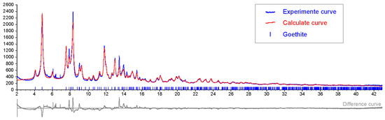 The presence of goethite as the main iron-oxyhydroxide phase was previously detected by conventional X-ray diffraction [21], and here confirmed using synchrotron X-ray powder diffraction (SXRPD). As shown in Figure 4 low crystalline goethite FeO(OH) is the main iron-hydroxide mineral component. The lack of other iron-bearing minerals, such as hematite, and the exclusive presence of goethite suggest that no secondary (i.e., diagenetic) processes have occurred. The rounded shape of the ooids and their composition are strictly dependent on the aqueous environment and on the continuous venting of CO2-rich hydrothermal waters [21].