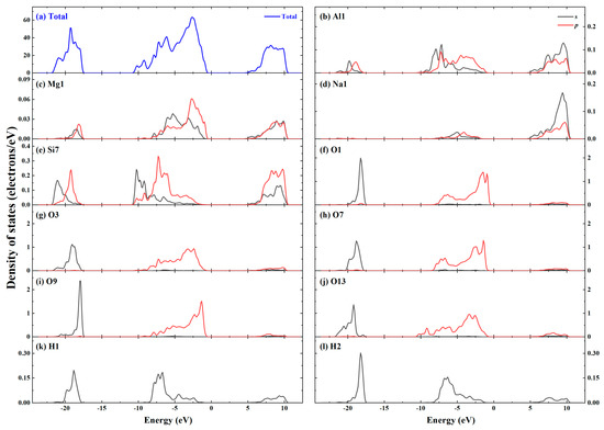 The total (a) and partial density (b–l) of states of Na-MMT at 19.92 GPa.