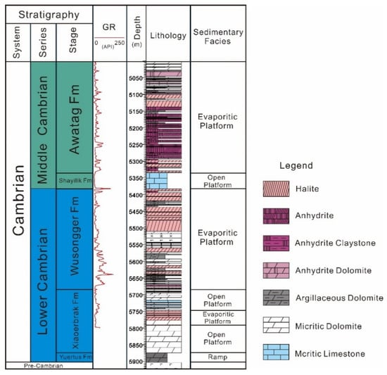 Stratigraphy and lithology of the Lower–Middle Cambrian deposits of well ZS1 in the Tarim Basin.