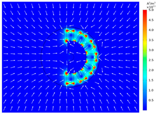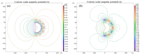 Using the Magnetic Fields, No Currents (mfnc) interface of COMSOL, the numerical solution of magnetic field distribution is obtained by solving the Gauss law of magnetic field with scalar magnetic potential as the dependent variable.