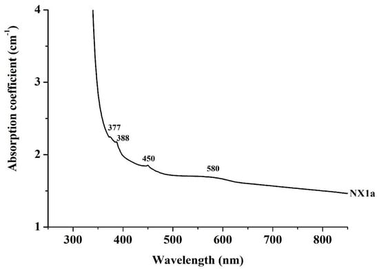 UV-Vis spectra from 250 to 850 nm of the light colored sapphire NX1a from (Kinidaros) Naxos Island.
