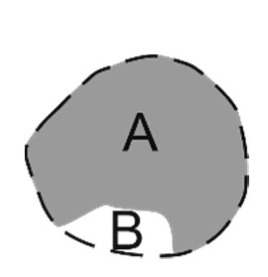 Scheme of a particle: the gray area (A) and hull-dotted line (A + B) [].