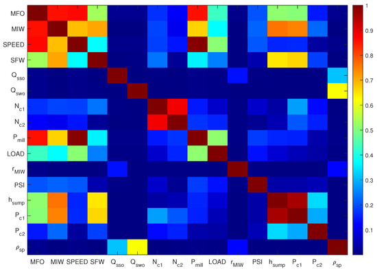 The site uses a Siemens PCS7 programmable logic controller with a WinCC human–machine interface that connects to an OSI PI historian using Open Platform Communication. Analogue instrument data are logged to the database at a maximum frequency of 1 Hz. The primary mill data used during this project were sampled at a period of 2 min (0.008 Hz) over a duration of 23 weeks from the 1 September 2019 to the 10 February 2020.