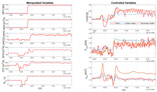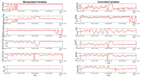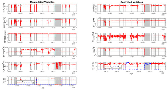 As discussed above, planned step tests were made on the process. The key system MVs and CVs for this period are shown in Figure 9.