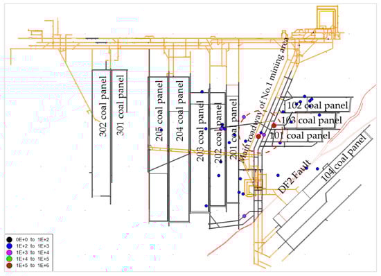 Microseismic Distribution Diagram on 27 September when Rock Burst Occurred.