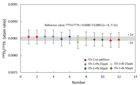 Effects of Pb and Bi on 230Th/232Th isotopic ratio of ITh-1.