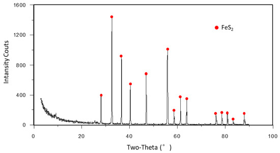 We also selected a large iron sulfide mineral, QS-1, collected in the Indian Ocean with an intact crystal form as a work standard. QS-1 was observed for pyrite under a microscope (Figure 5). The XRD pattern indicated that the main component of sulfide QS-1 was 99% pyrite (FeS2, Figure 6). Elemental analysis showed that the Fe content was approximately 33% (Table 6).