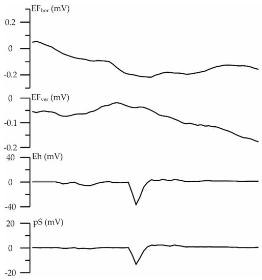 The anomalous intervals of the EF values were taken to be those whose amplitude was at least 0.25 mV, which was three times higher than the standard deviation of the field values (background noise) outside the anomalous intervals.