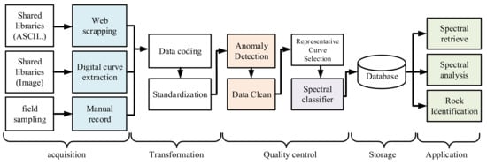 The RockSL aims to establish an integrated shared dataset using an open-access operating software. We designed the work procedure from data acquisition to spectral application (Figure 4), slightly adjusting that from a previous study [] to increase its effectiveness and reliability.