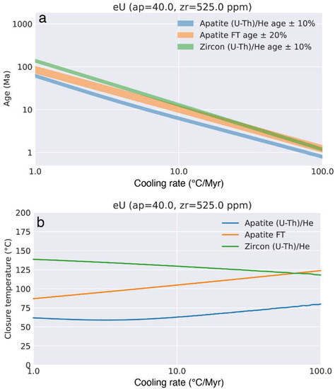 - Reiners, P.W.; Brandon, M.T. Using Thermochronology to Understand Orogenic Erosion. Annu. Rev. Earth Planet. Sci. 2006, 34, 419–466. [Google Scholar] [CrossRef] [Green Version]
