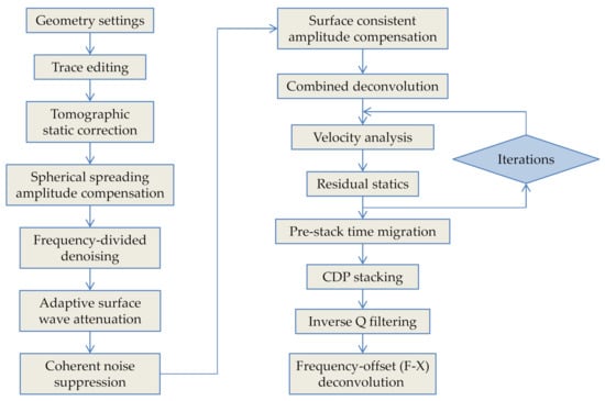 Processing workflow for 3D seismic data of a sandstone-type uranium deposit (modified from Wu et al. [56]).