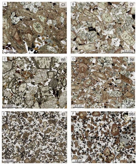 - Hibbard, M.J. Petrography to Petrogenesis; Prentice Hall: Hoboken, NJ, USA, 1995. [Google Scholar]