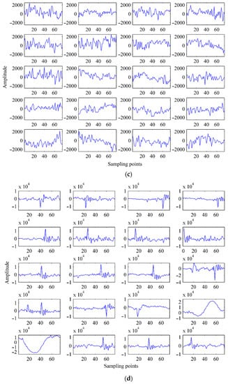 The typical samples in the training set. (a) High-quality electric channel samples. (b) Noisy magnetic channel samples. (c) High-quality magnetic channel samples. (d) Noisy magnetic channel signal samples.