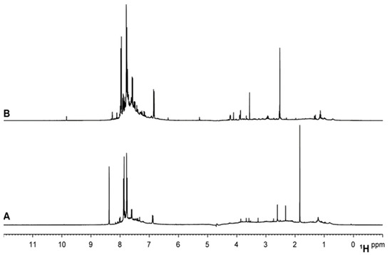 1H NMR spectra of FA samples extracted from soil (A) and water (B).