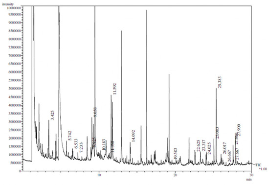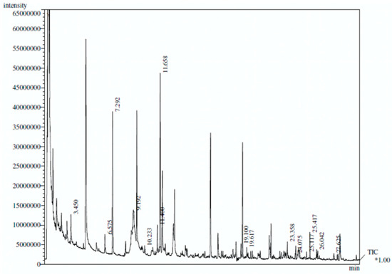 The pyrolysis products identified included several classes of compounds, in good agreement with previous reports [45,46,47,48,49,50,51].