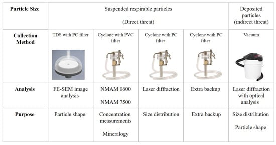 The authors declare no conflict of interest. The funders had no role in the design of the study; in the collection, analyses, or interpretation of data; in the writing of the manuscript, or in the decision to publish the results. The funders only provided the following equipment: the Dorr-Oliver cyclones, air pumps, and filter media for collecting the dust.