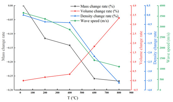 Electronic scales, Vernier calipers, and wave velocity testers (RSM-SY5(T), SINOROCK, Wuhan, China) were used to measure the variations in mass, volume, density, and wave velocity of the heat-treated specimens.