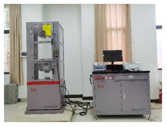 The uniaxial compression test ( 50 mm × 25 mm) and Brazilian splitting test ( 50 mm × 100 mm) were conducted on the heat-treated rock samples using a HUT305A type 300 kN microcomputer-controlled electrohydraulic servo universal testing machine (as shown in Figure 6, WANCE, Shenzhen, China) to study the effect of high temperature on the mechanical properties of rock.