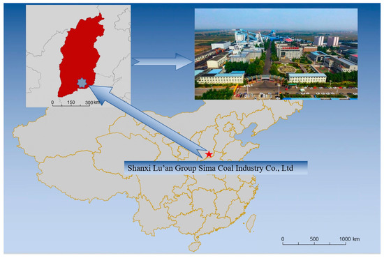 As shown in Figure 1, the Sima coal mine is located in Changzhi City, Shanxi Province, China. Its geographical location is 36°05′18″–36 °08′32″ north latitude and 113°00′33″–113°04′52″ east longitude. The mining area is located at the northeast boundary of the Sima mine field in the Changzhi District, and the surface is located at Chenggong Automobile Factory. The coal seam mined has a depth of 332 m, an average dip of 5°, and a topsoil layer thickness of 76.15 m. The immediate roof of the coal seam is 4.25 m grey-black mudstone, the old roof is 6.7 m grey-white fine-grained sandstone, and the floor of the coal seam is 3.55 m grey fine-grained sandstone with a muddy structure at the top. Some of the borehole columns are shown in Table 1.