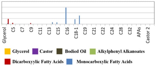 The contents of fatty acids were also detected by Py-GC/MS for the red pigment sample (Figure 7), including monocarboxylic and dicarboxylic fatty acids, both of which are typical pyrolysis products of dry oil [57]. The ratio of palmitic acid to stearic acid (P/S) is often used to differentiate various types of dry oils, i.e., P/S values are 0.9–1.1 for boiled tung oil, 1.3–1.6 for raw tung oil, 1.2–1.5 for linseed oil, 1.6–1.8 for poppy oil, and 1.8–2.0 for walnut oil [58]. The determined P/S value of the dry oil in our sample is at 1.96, indicating that the red pigment sample might contain walnut oil. This assumption is further verified by the presence of methylamine and N, N-dimethyl- (peak 2) in the obtained pyrolysis products (Table 3) [59]. The use of the walnut oil might be related to the craftsmanship of the color paintings on the wooden architecture, where oil is applied in wood surface for better painting before executing pigments. As reported in many studies [60], tung oil is the most widely used, indicating that the use of the walnut oil is a unique painting process for paintings in the mansion for Price Dai.