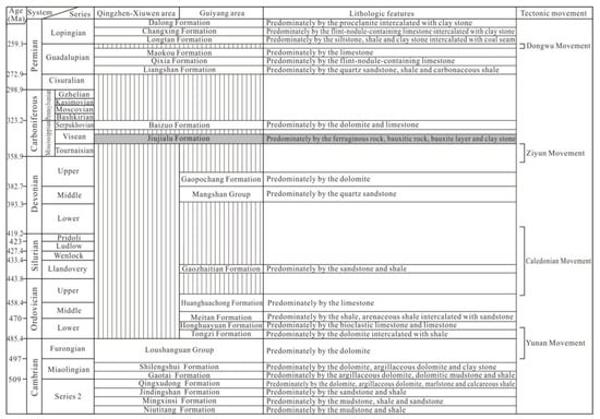 Paleozoic stratigraphic sequences in central Guizhou area (modified from [28]).