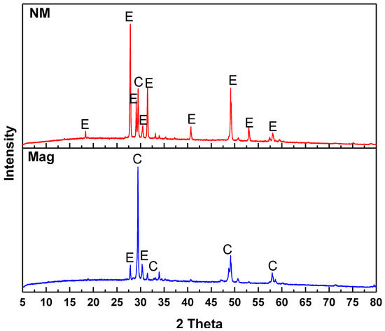 XRD patterns for magnetic and nonmagnetic fraction, C for chalcopyrite, and E for enargite.