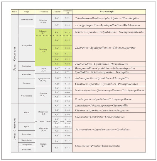 Cretaceous biozonation based on palynomorph assemblages in the Songliao Basin, according to [17].