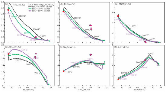- Bohrson, W.A.; Spera, F.J.; Heinonen, J.S.; Brown, G.A.; Scruggs, M.A.; Adams, J.V.; Takach, M.K.; Zeff, G.; Suikkanen, E. Diagnosing Open-System Magmatic Processes Using the Magma Chamber Simulator (MCS): Part I—Major Elements and Phase Equilibria. Contrib. Mineral. Petrol. 2020, 175, 104. [Google Scholar] [CrossRef]