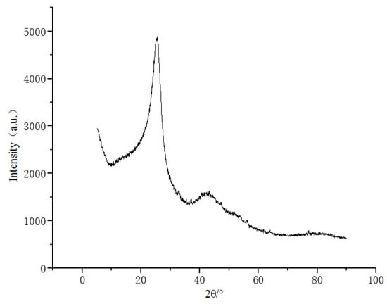 The XRD instrument selection specifications are: SmartLab-9 kW, copper target, acceleration voltage 45 kV, current 200 mA, scanning range 2θ from 5° to 70°, scanning rate 2°/min, X-ray wavelength 0.15418 nm. Two diffraction peaks on the XRD pattern (2θ ranges of 20° to 30° and 40° to 50°) correspond to the positions of the 002 and 100 peaks in the standard graphite XRD diffraction [24].